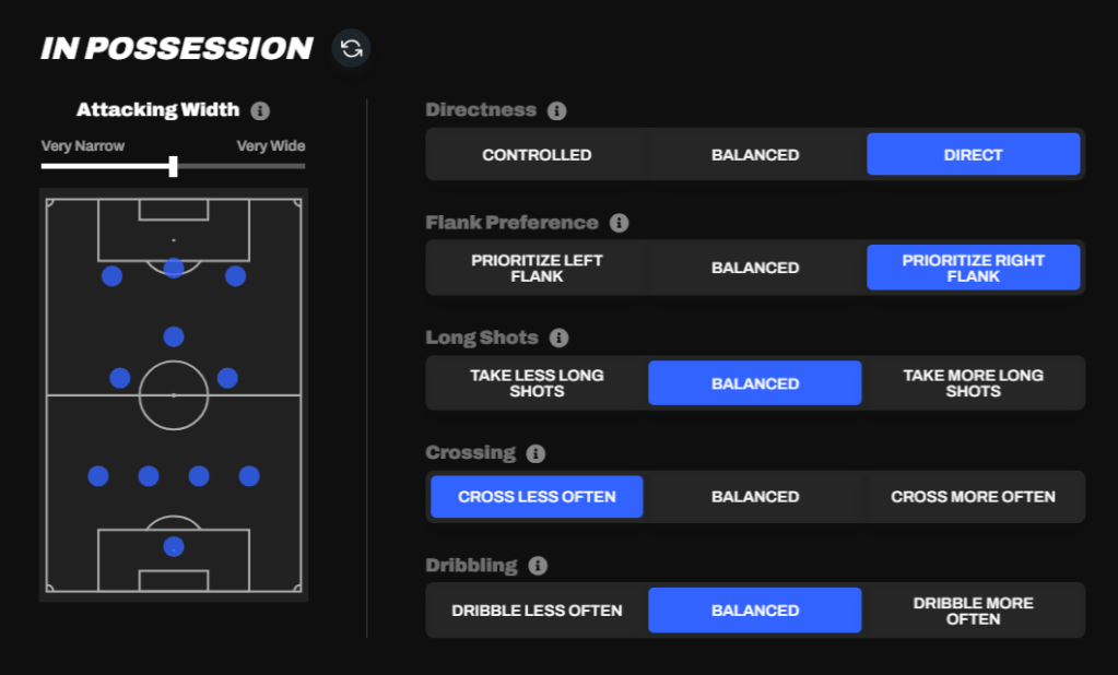- Tactics – if you have a club, this is where you can set your team and player instructions