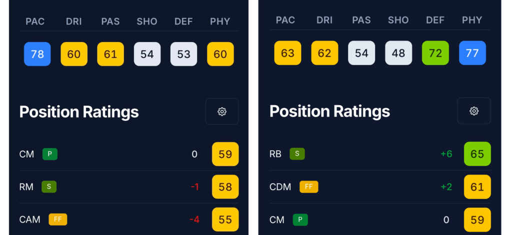 For example, both players shown below are 59-rated CMs on MFL but have very different attributes and preferred positions when you look past that headline number: